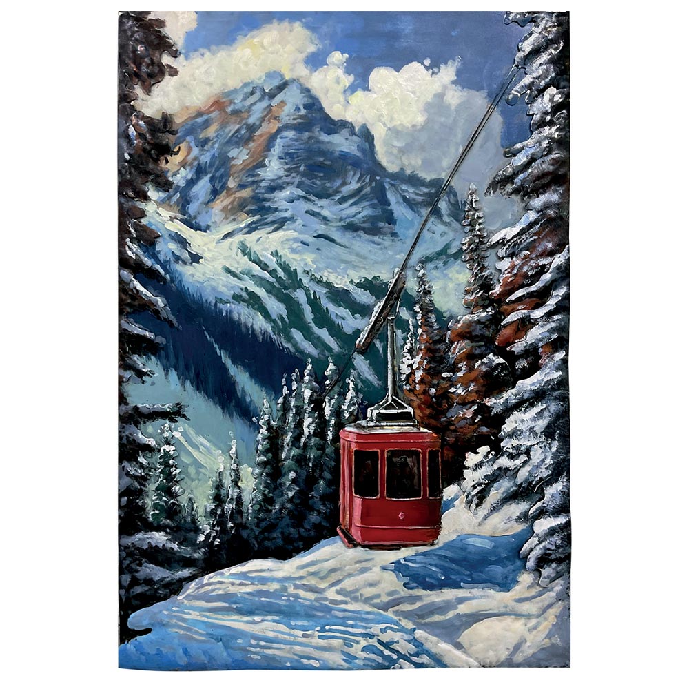 Tableau en métal sur le thème de la montagne.